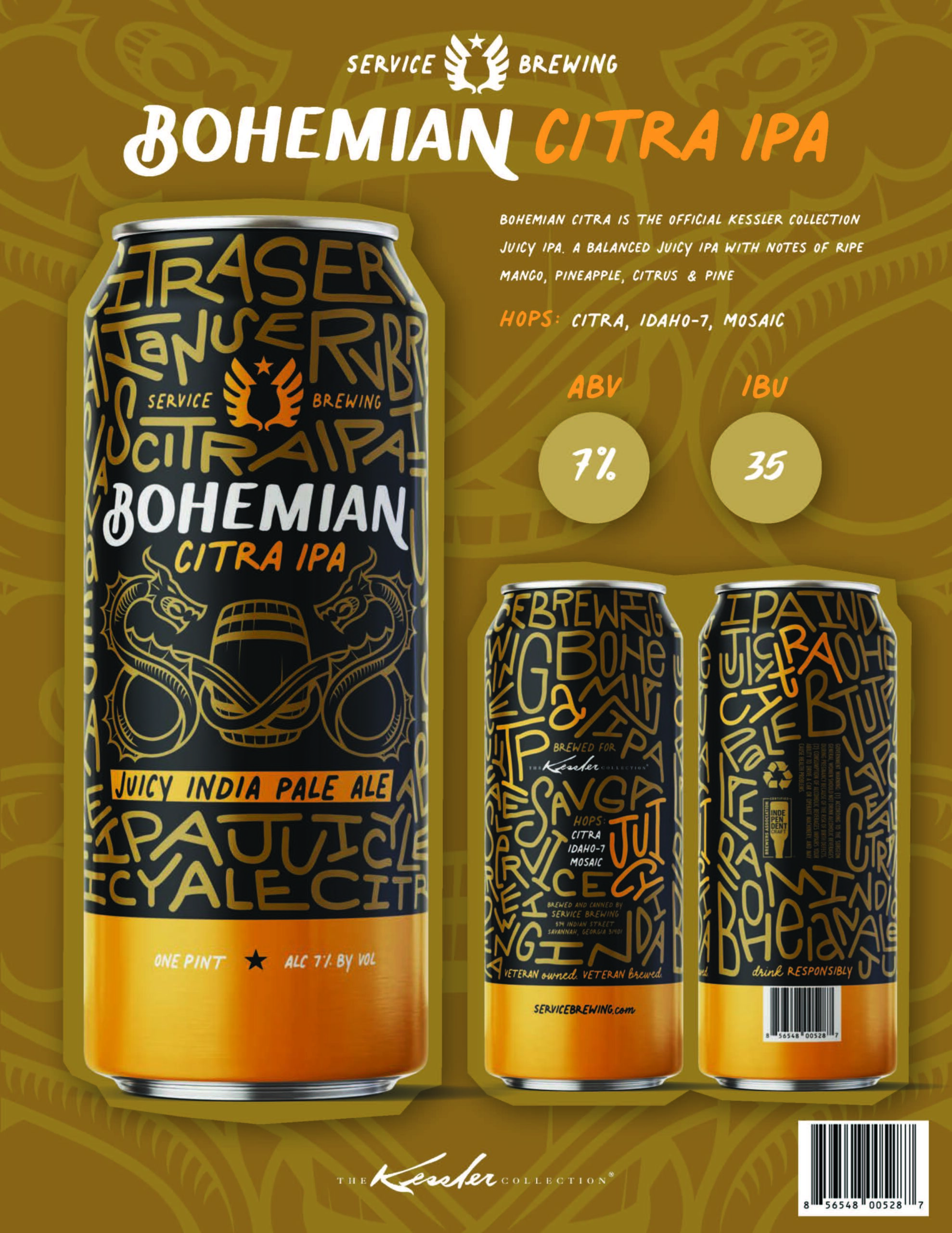 Bohemian Citra is the official Kessler collection juicy IPA. A balanced juicy IPA with notes of ripe mango, pineapple, citrus, and pine.