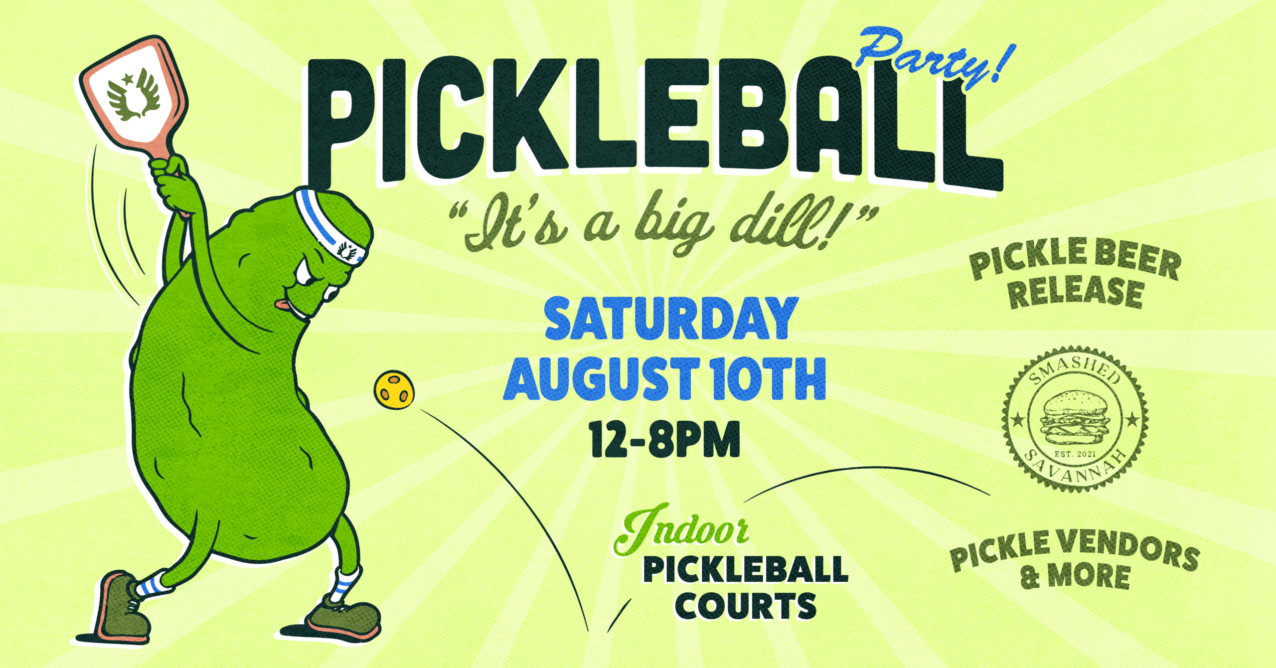 Service Brewing is proud to announce our first Pickleball Party on Saturday, August 10th from 12-8pm! Enjoy pickle beer releases, pickle vendors, pickle inspired menu from Smashed Savannah and have the opportunity to play pickleball on our indoor courts! Bring your paddles or borrow one of ours… just don’t miss it! It’s a big dill ya’ll!