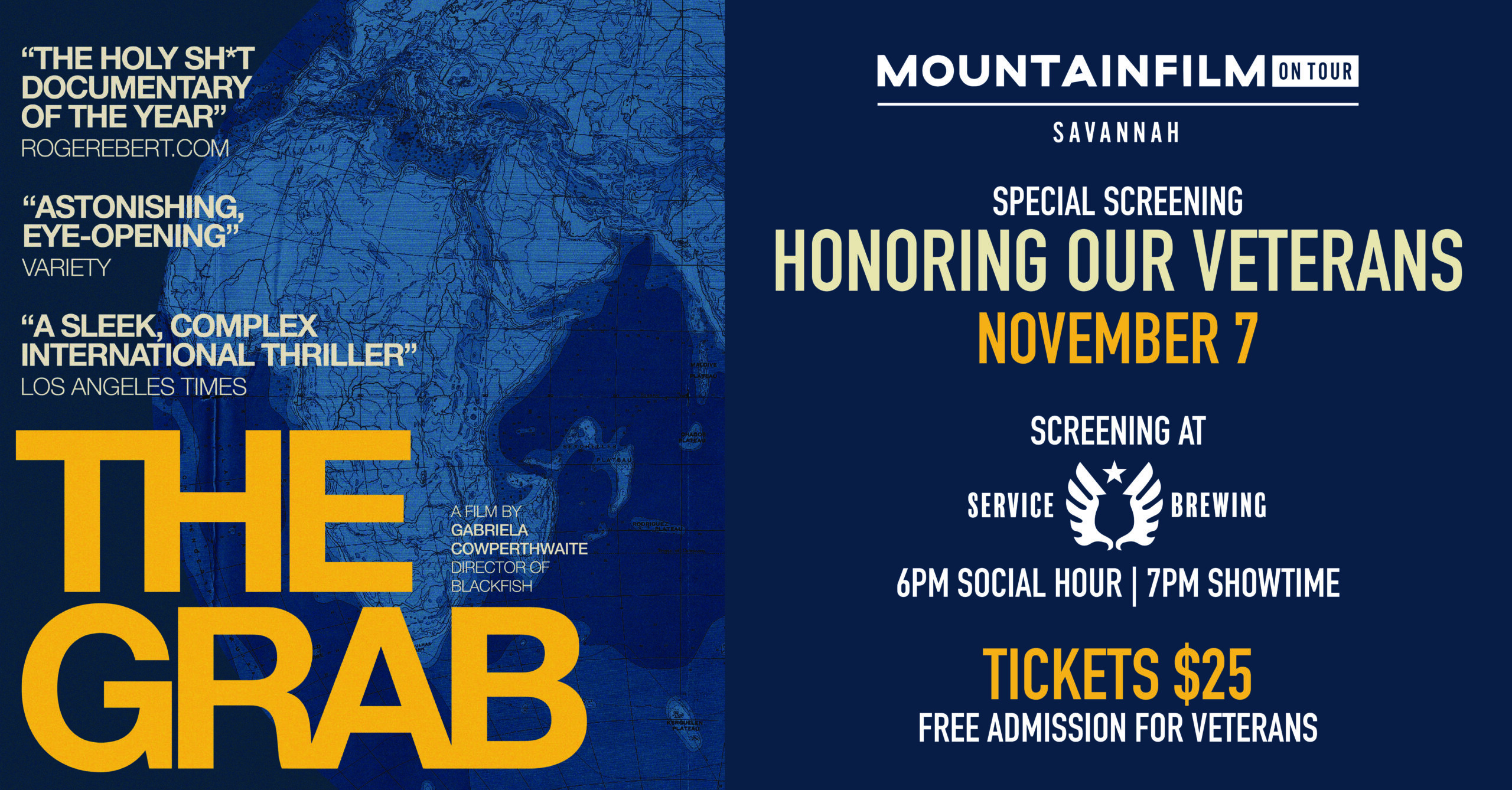 Mountainfilm on Tour is back at Service Brewing for a special screening of documentary film “The Grab”. Experience this powerful documentary while enjoying a cold beer and burgers from Smashed Savannah food truck.